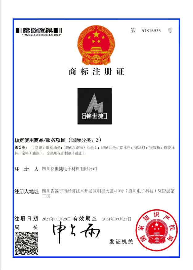 四川銘世捷電子材料有限公司成立于2020年9月。是一家從事電子漿料研發(fā)、生產(chǎn)、銷(xiāo)售為一體的高新技術(shù)企業(yè)。
